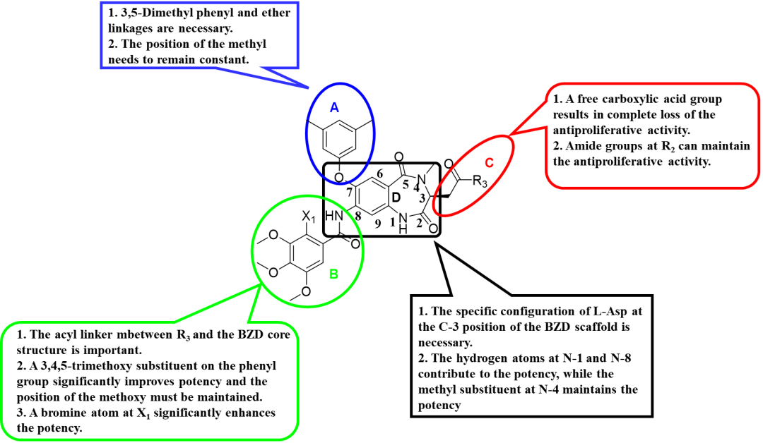 1,4-苯并二氮杂卓-2,5-二酮类化合物的抗肿瘤活性“构-效”关系