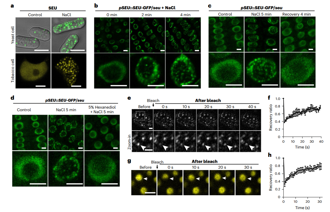 图1. SEU在高渗胁迫下发生相分离形成凝聚体