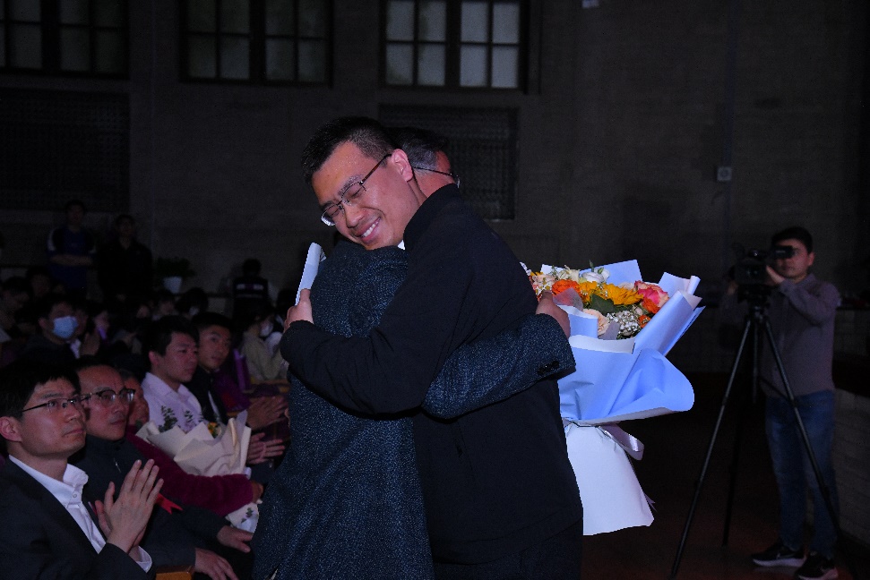 活动现场,车辆与运载学院副教授聂冰冰和天文系副教授蔡峥携各自的学生带来改编歌曲《是老师,是学生》,两对师生深情对唱间,道出了老师对学生的深切牵挂和学生对老师的真挚感谢。随后,两届“良师益友”获得者、马克思主义学院教授肖贵清与“AI三部曲”系列课程的开设者、软件学院副教授龙明盛分别与各自的学生回忆分享了导学之间的温暖故事。