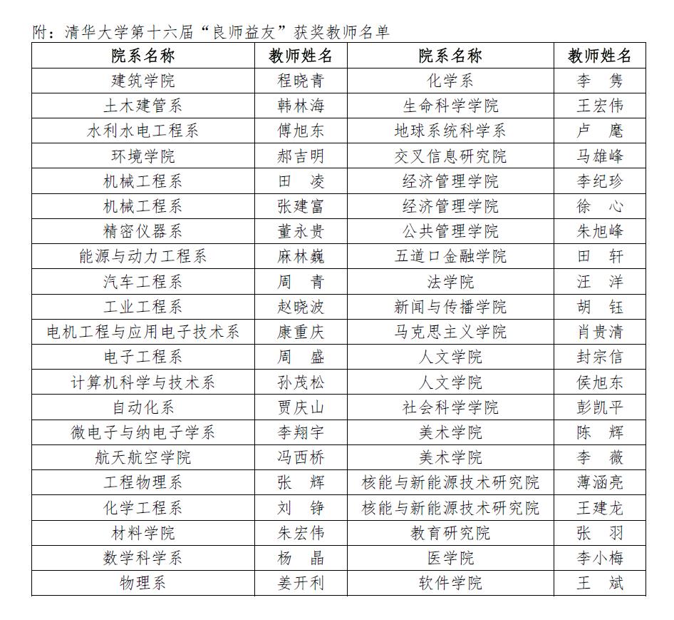 开云线上(中国)网页版自1998年开展“良师益友”评选活动以来,同学们自发投票评选心目中的657位好老师,涌现出了一批“立德为首”“学高为师”“教益为友”“育人为本”的清华良师,获称号5次以上进入“名人堂”的教师共有20人。“良师益友”评选活动不断引领师德师风建设,树立教书育人典范,营造尊师重教氛围,传递了导学关系正能量。