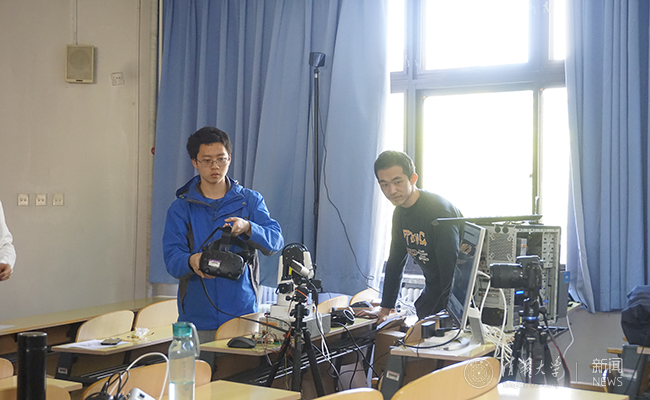 在评审现场,各位评委专家与选手频频互动,展开热烈讨论。在环保建设分场,评委会主席、水利系杨大文教授肯定了选手们的创意,同时对许多作品都提出了宝贵的改进意见;在信息技术分场,年逾古稀的自动化系老教授萧德云一直认真听取选手答辩,不时和选手展开讨论,并详细询问项目开展情况。