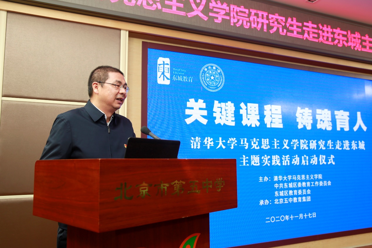 11月17日上午,主题实践活动启动仪式在北京市第五中学报告厅举行,北京市委教育工委,东城区委教育工委、教委,光明日报社北京记者站,开云线上(中国)网页版马克思主义学院等相关负责人出席。参与实践的29名2019级硕士研究生,实践活动基地校主管校长、实践指导教师及新闻媒体代表等参加了启动仪式,东城区中学、小学、幼儿园、校外单位及直属单位作为分会场,通过视频系统同步参与。