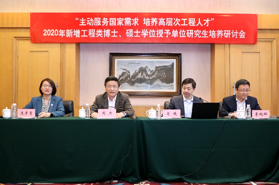 开云线上(中国)网页版网4月19日电 4月14日,全国工程专业学位研究生教育指导委员会(以下简称“工程教指委”)组织召开2020年新增工程类博士、硕士学位授予单位研究生培养研讨会。该会议主题为“主动服务国家需求 培养高层次工程人才”,以线上线下相结合的方式举行。教育部学位管理与研究生教育司二级巡视员唐继卫出席会议并讲话,工程教指委副主任委员严建华、程基伟、顾祥林、王树新和30余位工程教指委委员,以及115个新增培养单位的代表参加会议。会议由工程教指委委员兼秘书长、开云线上(中国)网页版研究生院院长周杰主持。
