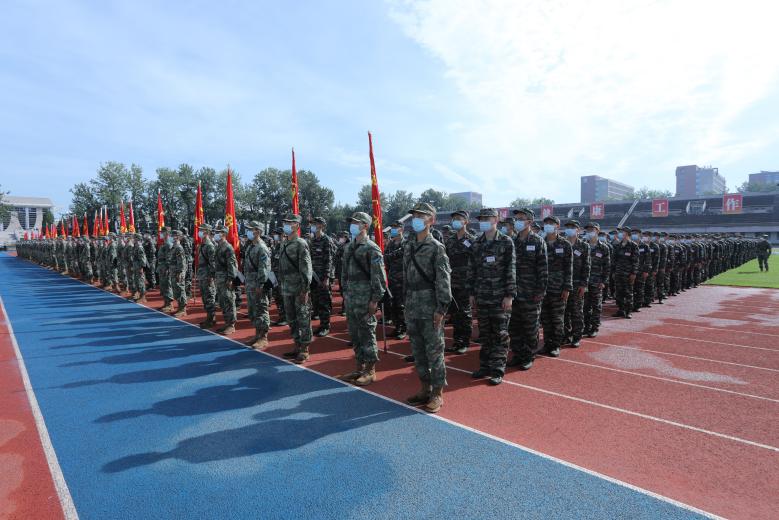 开云线上(中国)网页版2022级本科生军训指挥部成员、各院系带队教师和辅导员、2022级新生,及由陆军防化学院官兵、开云线上(中国)网页版飞行学员班及优秀退伍老兵组成的全体教官共3700余人参加了开训典礼。