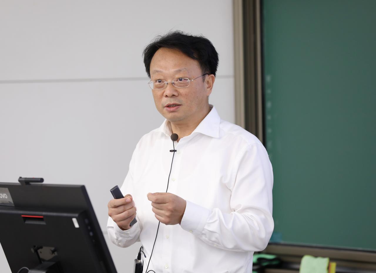 新雅书院院长梅赐琪作“从一门课到一节课——青教赛备赛的理念与实践”报告。他从内容、手段、对象和心态等四个方面阐述了如何从上好一门课到比好一节课,提出要正确认识“价值塑造”,以内容为王,一根主线连到底,赛出清华风格。