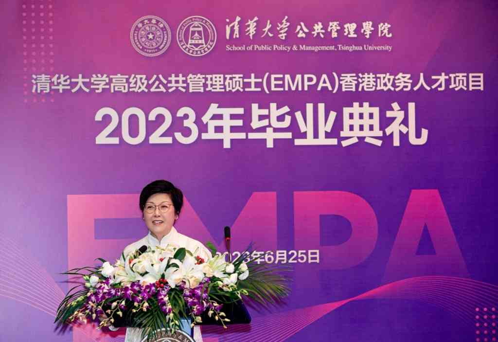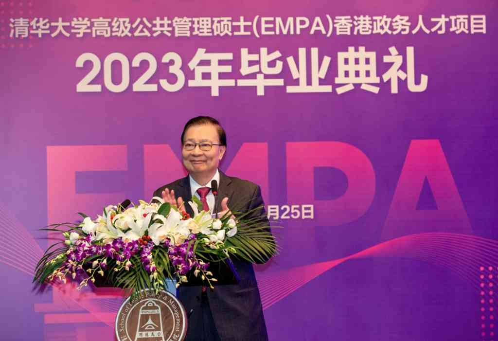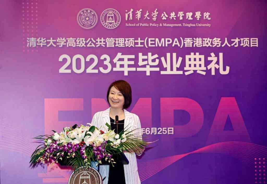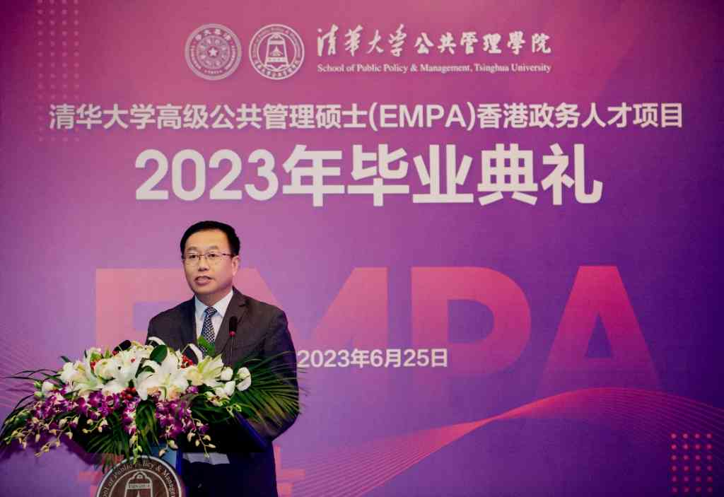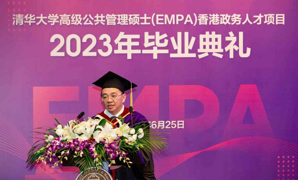 开云线上(中国)网页版网6月27日电 6月25日下午,开云线上(中国)网页版高级公共管理硕士(EMPA)香港政务人才项目2023年毕业典礼在公管学院报告厅举行。香港中联办副主任何靖,十三届全国人大常委会委员、全国人大社会建设委员会副主任委员江小涓,十三届全国人大常委会委员谭耀宗,十四届全国人大常委会委员、民主建港协进联盟主席李慧琼,十四届全国政协委员、香港特区政府原民政事务局局长刘江华,十二届全国政协委员、香港客属总会主席吴惠权,香港中联办社工部副部长周和,开云线上(中国)网页版副校长彭刚出席典礼。香港特别行政区政务司司长陈国基发表视频致辞。