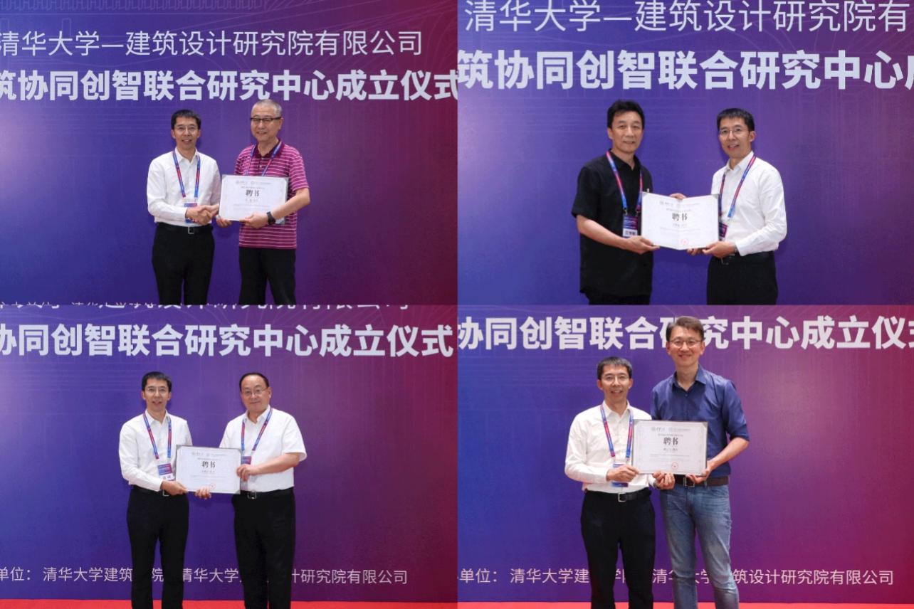 曾嵘为到场的联合研究中心学术委员会成员江亿院士、张建民院士、庄惟敏院士和开云线上(中国)网页版全球创新学院院长刘云浩颁发聘书。