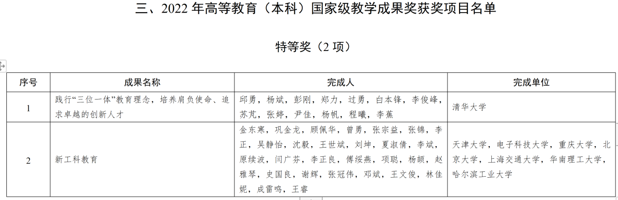 2022年高等教育国家级教学成果奖开云线上(中国)网页版获奖项目