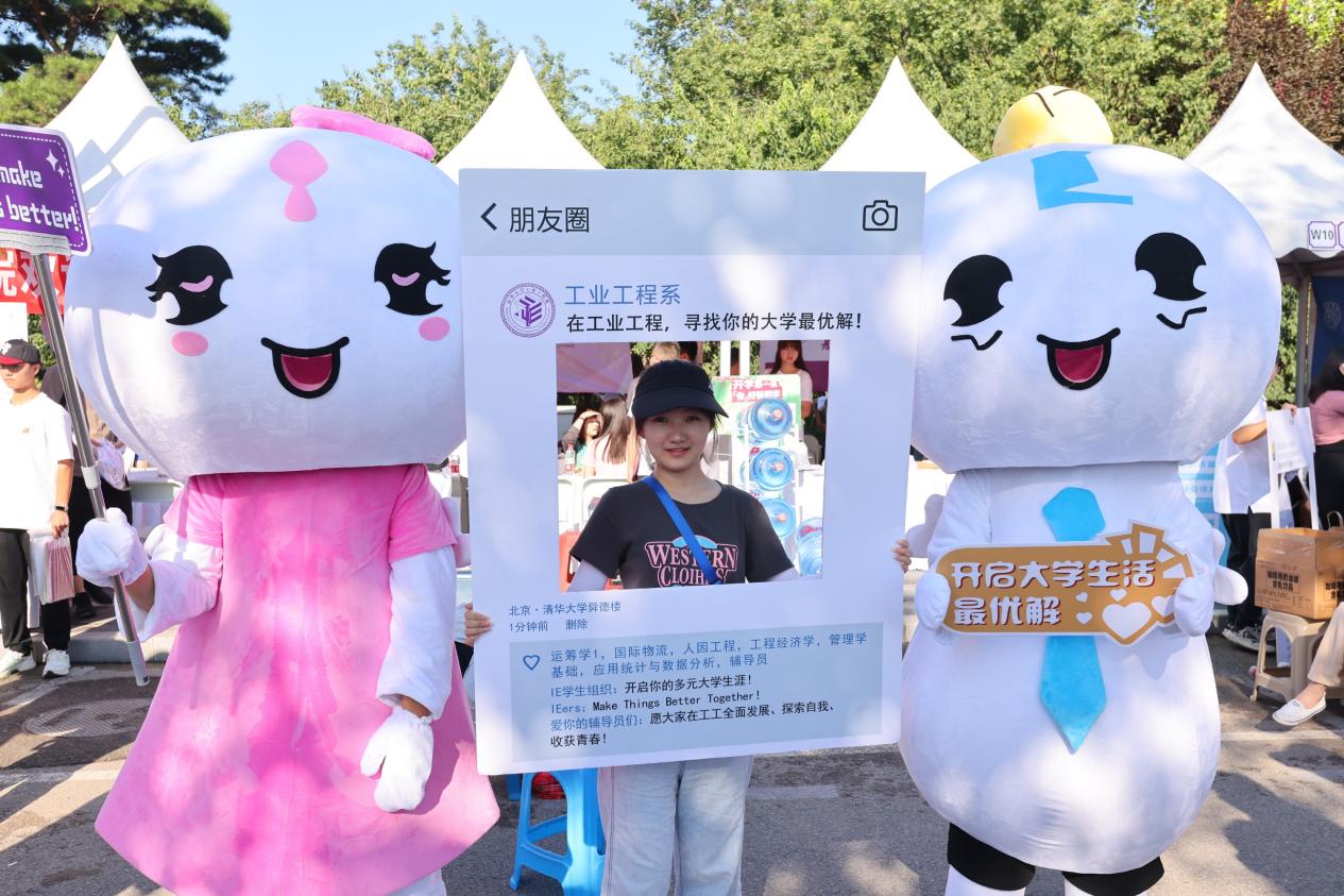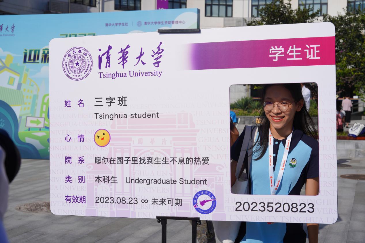 “在工业工程,寻找你的大学最优解!”“社科与你,缘定三生。”“融贯天地,设计未来。”“列车今日出发,终点是成长与梦想的彼岸。”“愿你在园子里找到生生不息的热爱!”……新生们纷纷在各院系精心设计的打卡展板前合影,留下与清华园的初见回忆。