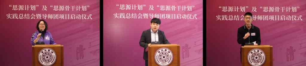 过勇围绕“思源计划”和“思源骨干计划”的发展提出三点要求:要充分发挥社会实践这一核心培养环节的育人作用,增强同学们对于公共政策制定与实施的认识,在本土实践中更好地理解社会、理解国家,在海外实践中感悟多元文化基础、加强与各国友人的沟通交流;要从“饮水思源,服务社会”的内涵出发,丰富和完善多元化的培养环节,充分调动社会实践以外的培养资源,探索因材施教计划的培养新模式;要充分发挥学生骨干的示范引领作用,参与两个计划的同学们不仅要善于独立思考、勇于突破自我,更要带动周围的同学一起成长。