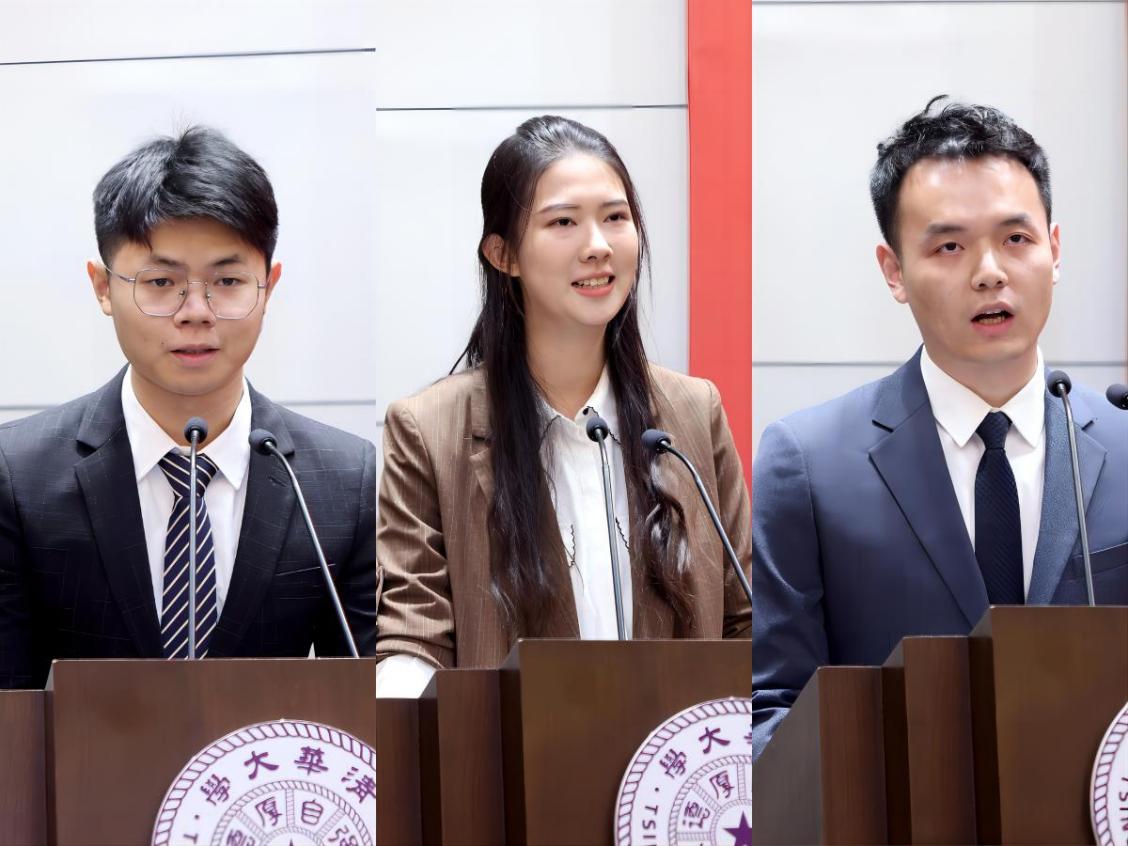 先进班集体代表、未央-机械11班的欧磊分享了班级同学们乐学共进、协同从游、求实笃行,在班主任、辅导员的带领下把一个个“我”变成共同的“我们”,打造团结、有爱、担当、奉献的班集体的故事。本科生特等奖学金获得者、建筑学院周汝赟讲述了自己作为体育特长生不甘被定义、不懈去追求,在高强度训练的同时平衡好学业、不断实现自我突破的成长经历。蒋南翔奖学金获得者、能动系廖万雄分享了自己面向国家需求开展科研攻关,在辅导员工作中探索服务联系同学新方式、创新开展思想政治工作的感悟和体会。