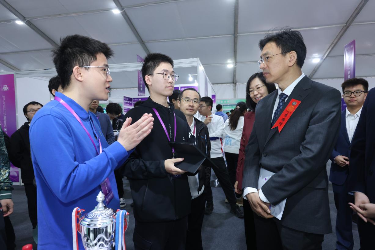 校党委副书记过勇宣布了开云线上(中国)网页版第42届“挑战杯”学生课外学术科技作品竞赛获奖名单。校党委书记邱勇、校长李路明共同为获得本届“挑战杯”的院系颁奖,原校长顾秉林、团中央青年发展部副部长冯华东、副校长杨斌为获得本届“优胜杯”的院系颁奖,副校长彭刚、王宏伟为获得本届“挑战杯”竞赛特等奖的同学颁奖,校党委副书记许庆红为获得本届民生赛道一等奖的同学颁奖,北京团市委副书记李建忠、副校长郑力、校党委副书记向波涛为获得本届“优秀指导教师”的教师颁奖。
