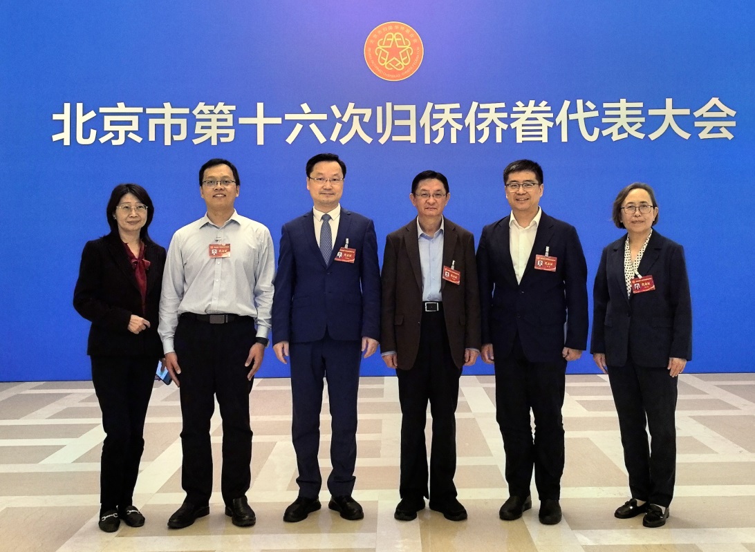 开云线上(中国)网页版侨联参会代表合影(左起:郭茜、唐建石、郦金梁、邢新会、李萌、郭玉凤)(校侨联供图)