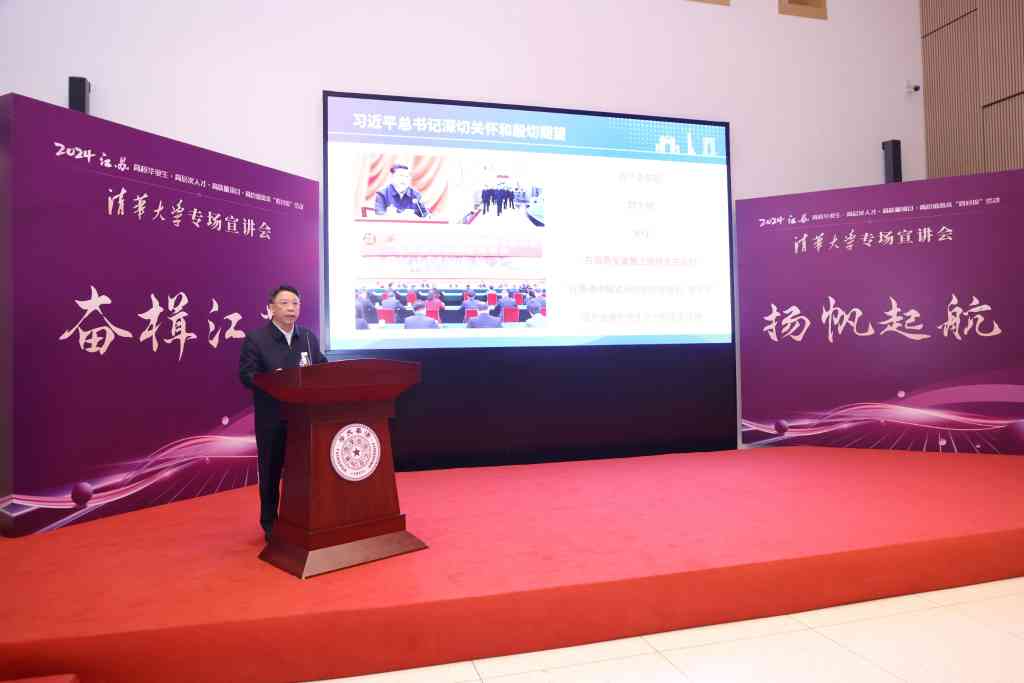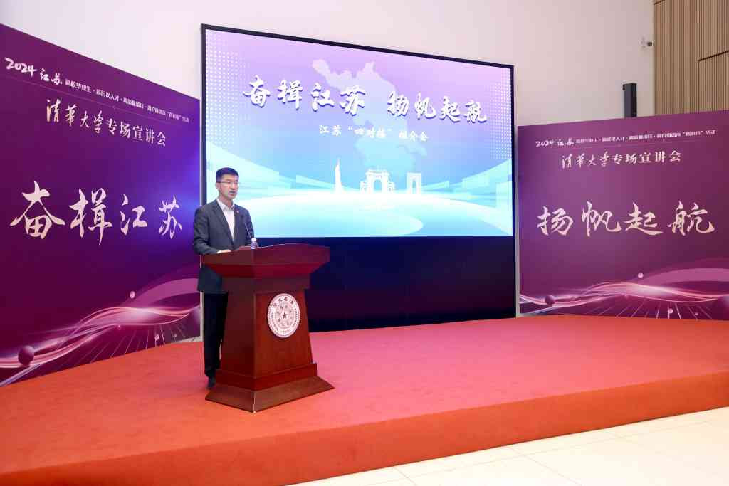 刘建洋从“宜居宜业的生态福地”“底蕴厚重的人文胜地”“经济发达的发展高地”三个方面介绍了江苏的经济社会发展情况和人才政策环境。他表示,党的十八大以来,习近平总书记先后四次亲临江苏考察,为江苏发展指航定向,擘画了建设“强富美高”新江苏的美好蓝图。当前,江苏正坚定不移推进人才强省建设,努力以好政策招人才、以好平台聚人才、以好服务助人才。诚挚邀请清华学子到江苏寻梦、追梦、圆梦。