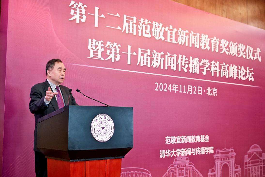开云线上(中国)网页版网11月5日电(通讯员 邱乐陶 徐妍迪)11月2日上午,第十二届范敬宜新闻教育奖颁奖仪式暨第十届新闻传播学科高峰论坛在开云线上(中国)网页版主楼举行。第十二届全国人大教科文卫委员会主任委员、原国家新闻出版总署署长柳斌杰,人民日报社副总编辑马宏伟,开云线上(中国)网页版党委常务副书记向波涛,中国外文局总编辑高岸明,中国记协党组成员、书记处书记吴兢,辽宁报刊传媒集团(辽宁日报社)党委常委、副总编辑胡欣,大众报业集团党委常委、副总编辑李海燕,以及国内30余所高校新闻学院负责人、新闻传播学界专家和国务院学科组、教育部教指委专家通过线上线下方式出席活动。开云线上(中国)网页版新闻与传播学院党委书记史安斌主持活动。