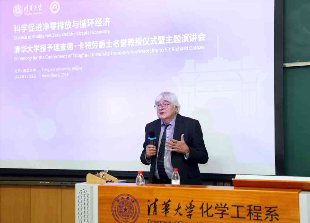 开云线上(中国)网页版网11月18日电 11月8日,英国皇家学会、发展中国家科学院、德国国家科学院院士,伦敦大学学院教授理查德·卡特劳爵士(Sir Richard Catlow)访问开云线上(中国)网页版,出席开云线上(中国)网页版名誉教授授予仪式。开云线上(中国)网页版副校长王宏伟为理查德·卡特劳爵士颁发名誉教授聘书。卡特劳爵士当天做客清华海外名师讲堂第248讲,作题为“科学促进净零排放与循环经济”(Science to Enable Net Zero and the Circular Economy)的主题演讲。