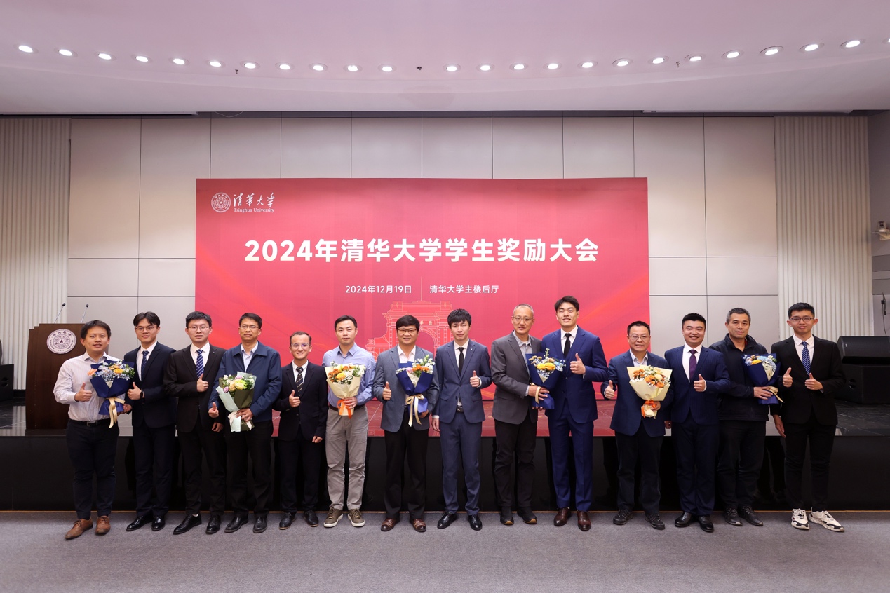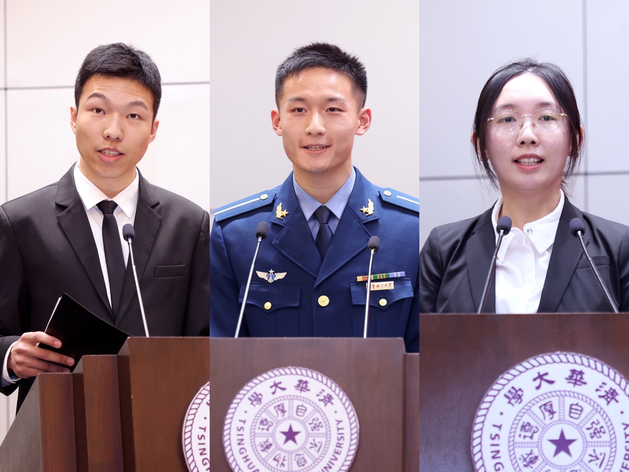 唐杰、梁琼麟、程曦、段江飞为蒋南翔奖学金、一二·九奖学金、王大中奖学金、邓稼先奖学金获奖学生颁发证书