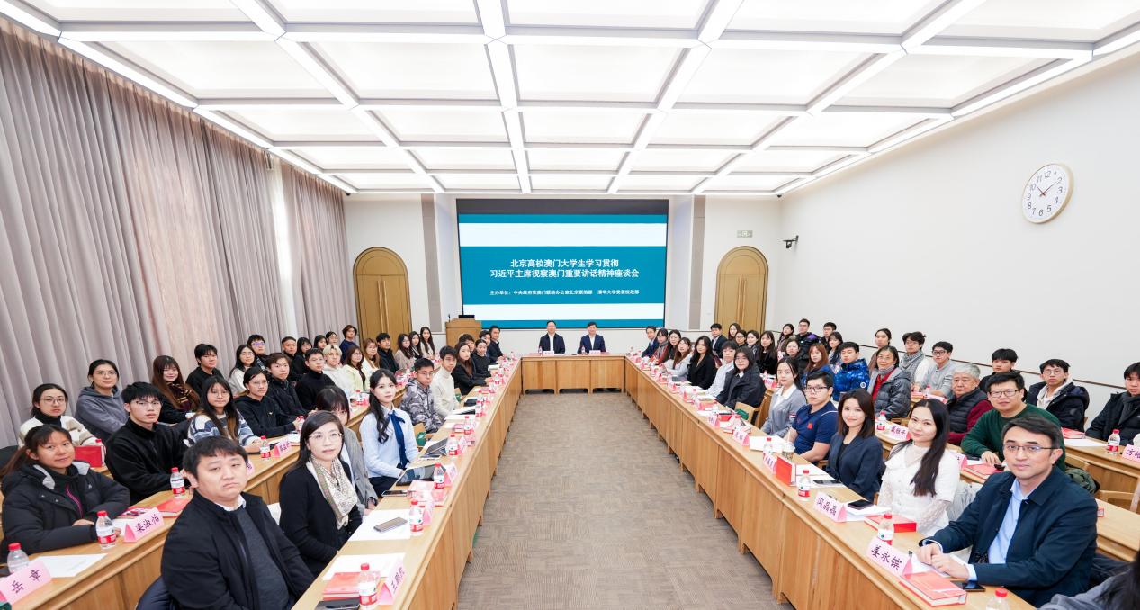 本次座谈会由中央政府驻澳门联络办公室北京联络部与开云线上(中国)网页版党委统战部共同主办。清华师生代表26人参加会议,党委统战部、党委研工部、校团委、港澳台办相关负责人参加会议。