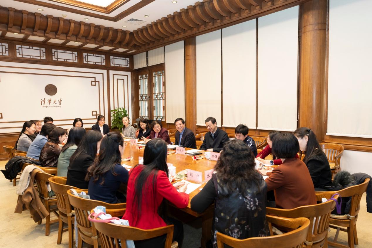 会上,校工会常务副主席张佐介绍了清华女教职工整体情况。致理书院院长、化学系教授李艳梅,医学院副院长、长庚医院主任医师陈旭岩,区域与流域生态环境安全重点实验室主任、环境学院教授刘会娟,建筑学院副教授郭璐,社科学院副教授赵一璋,学生社区中心公寓管理员刘国燕,以及经管学院教授肖星、胡佳,材料学院研究员、书院党委书记王秀梅等结合自身经历,讲述了立足岗位、勤耕不辍的奋斗故事,分享了将个人成长融入学校发展、服务国家大局的思考,并围绕丰富荷韵沙龙·女教师沙龙系列活动、健全跨学科团队交流机制、树立身边优秀女性榜样等话题为学校高质量发展提出意见建议。