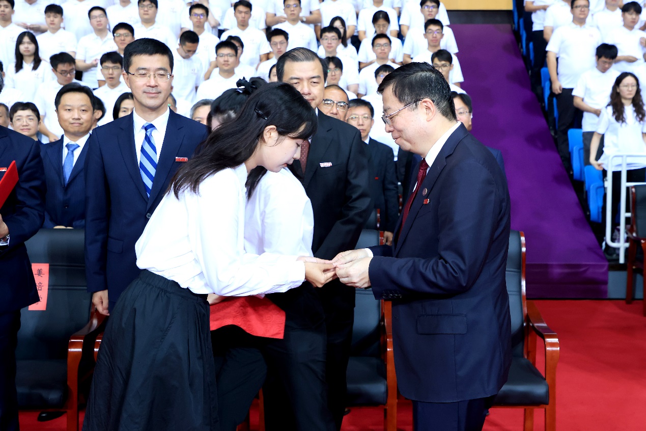 邱勇为新生代表送上开云线上(中国)网页版徽章