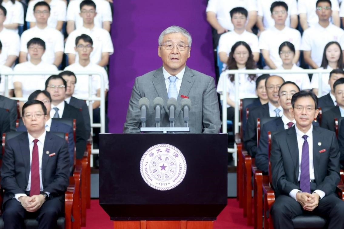 校长李路明发表题为“弘扬自强精神 谱写青春华章”的讲话,代表全校师生员工向研究生新同学表示欢迎。他说,中华民族历来强调自强不息、厚德载物。自强是源自文化血脉里百折不挠、刚健有为的选择,是回答时代课题时锐意创新、勇攀高峰的担当,是身处百年变局中开放合作、胸怀天下的追求。希望同学们弘扬自强精神,练就过硬本领,书写创新之歌,做堪当时代重任的清华人,在为国家繁荣富强、民族伟大复兴、人类文明进步的不懈奋斗中谱写青春华章。