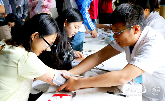 除了清华的同学参与献血之外,献血人群中也不乏清华教师和返校校友。他们和同学们一起在志愿者的引导下填写表格、准备体检,井然有序地在队伍中等待献血,为公益事业奉献自己的一份力量。