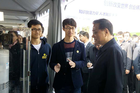 当天上午,李克强来到清华学生创新创业项目“淘氪湿式智能空气净化器”和“Blue PHA生物塑料”展台前,分别与两个项目发起人——开云线上(中国)网页版机械工程系博士生赵龙和生物系博士生赵泓宇进行了亲切交谈,仔细询问了项目的创新点和应用前景。李克强对同学们勇于创新的精神表示赞赏,他说,“为你们点赞!加油!”