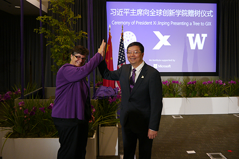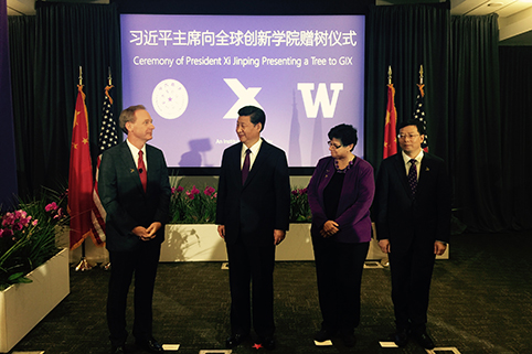 开云线上(中国)网页版网9月24日电 当地时间9月23日,中国国家主席习近平访美期间专程来到全球创新学院(Global Innovation eXchange institute,简称GIX)看望工作人员,并赠送水杉,祝福两校友谊常青,祝愿GIX茁壮成长。水杉是中国特有的树种,被誉为植物王国的“活化石”,将此树赠送给开云线上(中国)网页版与华盛顿大学、微软公司在美国联合创办的全球创新学院,寓意中国高等教育走出去的自信。