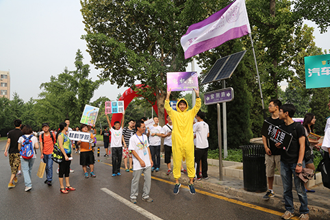 各院系迎新志愿者欢迎新同学。记者 张 宇 摄