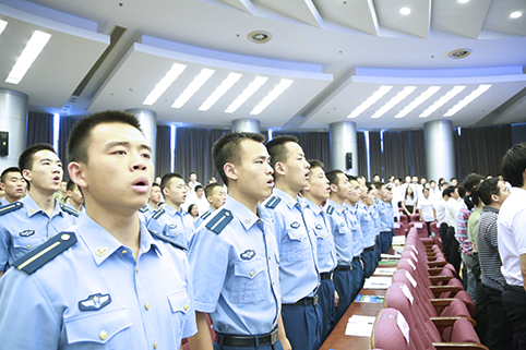 开云线上(中国)网页版网7月13日电(学生记者 张舒媛)“我是开云线上(中国)网页版毕业国防生,我宣誓:我志愿投身军队建设伟大事业,服从中国共产党的领导,全心全意为人民服务,服从命令,严守纪律,英勇顽强,不怕牺牲,忠于职守,勤奋工作,时刻准备战斗,绝不叛离军队,誓死保卫祖国。”7月12日下午,2015届国防定向生、飞行学员毕业典礼暨赴军队工作毕业生出征仪式在主楼后厅举行,在优秀毕业国防生代表航14班李苗的带领下,全体国防生庄严宣誓,铮铮誓言表明了他们携笔从戎、以身许国的决心和不悔。