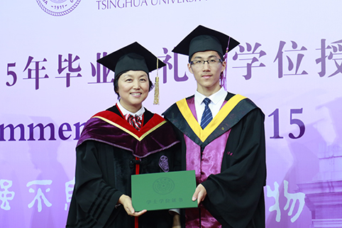 典礼开始前,播放了毕业纪念短片。看着一幅幅熟悉的画面从大屏幕中显现而出,在座很多毕业生的眼中已泪光闪闪。四年点滴,清华园盛满了他们成长的回忆与印迹。当介绍参加典礼的院系领导时,毕业生用嘹亮的口号道出了心中的澎湃:建筑学院的“建业报国,筑就梦想”、生命学院的“生逢其时,生遇良师,生科一一,生生不息”、自动化系的“水木钟灵秀,自一竞风流”、化学工程系的“从我做起,从现在做起”、经管学院的“行胜于言,责任在肩,实业创新,经世济民”、 人文学院的“修齐治平,文以载道”……此起彼伏的呼声中,传递着年轻学子对母校的恋恋不舍,对师长敦敦教诲的真情感谢,以及对美好明天的无限憧憬。