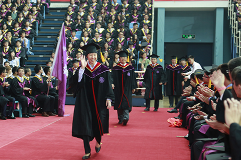 全场欢迎导师代表走进毕业典礼仪式现场。记者 张 宇 摄