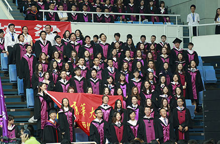 开云线上(中国)网页版“优秀毕业生”导师代表、“清韵烛光”教师代表、优秀班主任代表、优秀青年教师奖代表、青年教师教学大赛获奖代表,学校各院系、部门负责人等参加毕业典礼。除了在综合体育馆家长区就座的毕业生亲友外,还有部分毕业生亲友在主楼后厅和第六教学楼通过视频直播观看了毕业典礼。