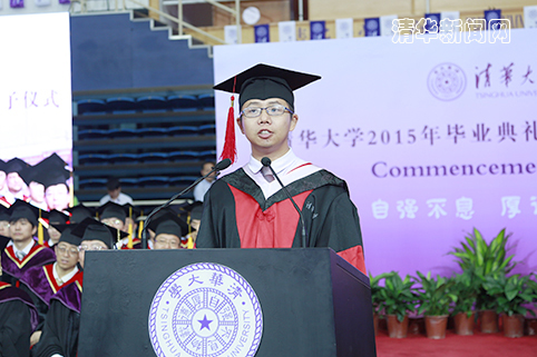 新闻学院2015届博士毕业生沙垚作为毕业生代表发言。他回顾了2005年考入清华园来的求学历程,讲述了自己进行社会调研的经历,还分享了对于“研究”和“传统文化”的理解。他说,今天同学们在清华毕业,但这也只是一个“小清华”,在祖国辽阔的土地上还有一个“大清华”,清华人以天下为己任,将自己的人生与天下兴亡结合起来,从顺应到引领历史的潮流,进而成就一番事业。