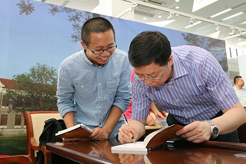 邱勇欣然为毕业生代表沙垚同学的处女作《土门日记—华县皮影田野调查手记》签名,作为毕业纪念。石加东 摄