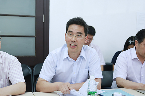 马克思主义学院院长艾四林汇报学院的整体情况。记者 张 宇 摄
