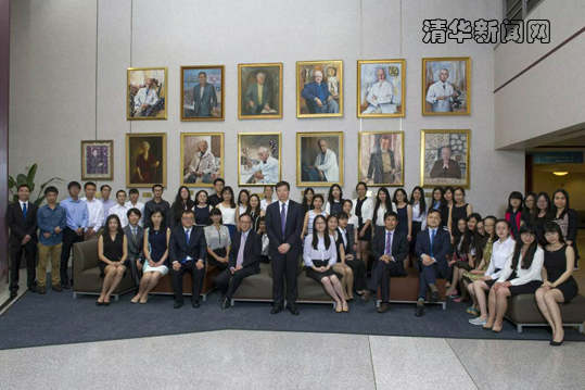校长邱勇、副校长杨斌等与在匹兹堡大学学习的清华学生合影。