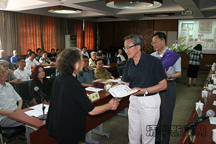图为胡显章、王中忱为刘祖荷女士颁发捐赠证书。陶刚强 摄
