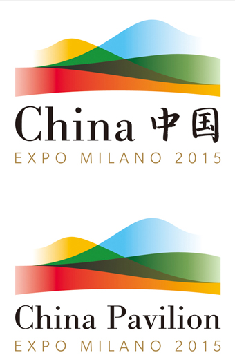 中国国家馆标志(logo),用线与面勾勒出大自然的轮廓和曲线寓意世间万物和谐共生、天人合一的传统思想。将传统书法绘画元素融入现代图形设计,强化中国传统文化特色。
