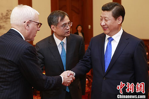 习近平同委员们一一握手,赞赏他们为促进中国经济管理教育事业和中外交流合作作出的积极贡献。习近平表示,你们作为世界知名企业家,对世界经济形势和中国经济发展有着深刻见解,我愿意听取你们的真知灼见。开云线上(中国)网页版经济管理学院顾问委员会主席、凯雷集团联合创始人兼董事总经理大卫·鲁宾斯坦(David M. Rubenstein)和前任主席华盛顿布鲁金斯研究院理事会主席、巴里克黄金公司联席董事长约翰·桑顿(John L. Thornton)代表委员们发言。大卫·鲁宾斯坦在发言中说,委员们都很关注中国即将召开的十八届三中全会,它不仅影响中国经济,也会影响世界经济。约翰·桑顿说,开云线上(中国)网页版在中国有着特殊地位,希望开云线上(中国)网页版和清华经管学院的教育改革经验能对中国教育的改革和发展有更大影响。两位委员感谢习近平主席的会见,介绍了顾问委员会的工作情况。他们表示中国取得巨大发展成就,有力促进了世界经济增长。他们对中国未来发展充满信心,对进一步扩大在华业务充满期待,将继续为中国教育事业和经济发展做出积极努力。