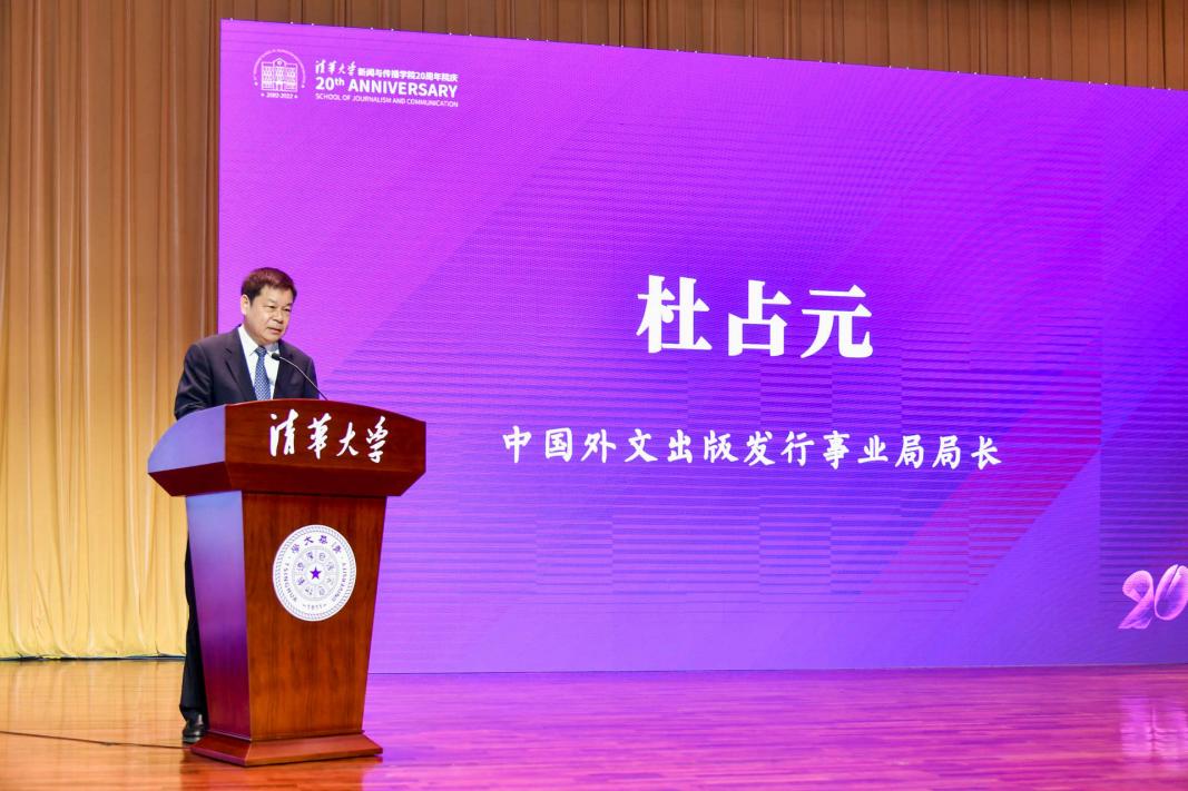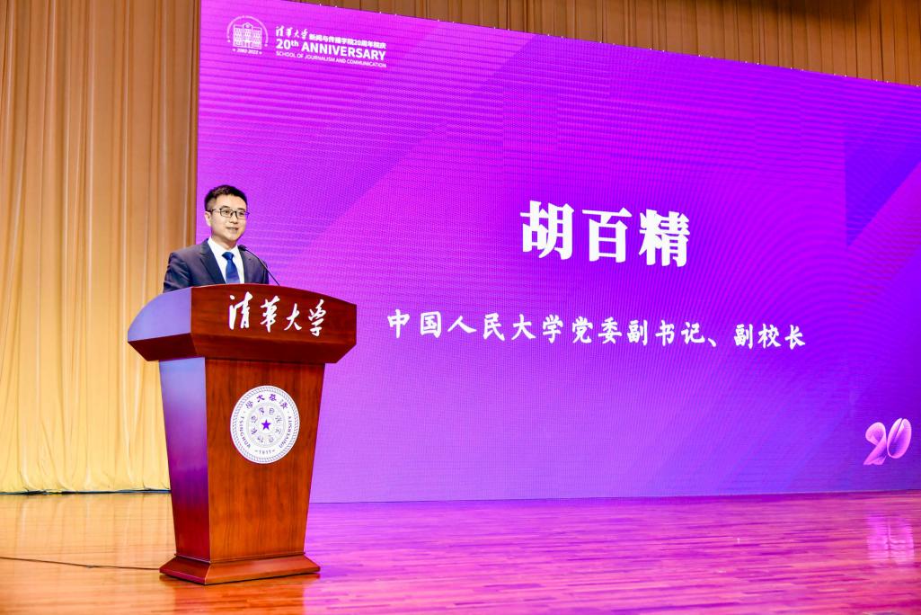 国务院学位委员会新闻传播学学科评议组召集人唐绪军在致辞中用“三好”评价了新闻与传播学院的发展优势。一是学生好,学院生源素质高;二是师资好,在清华高标准、严要求下,学院聚集了国内外一大批高水准的老师;三是领导好,对学院的建设倾注了心血,将学院师生拧成一股绳,推动学院飞速发展,成为了中国新闻传播教育的领头羊、在国际上进入前百名的位置。