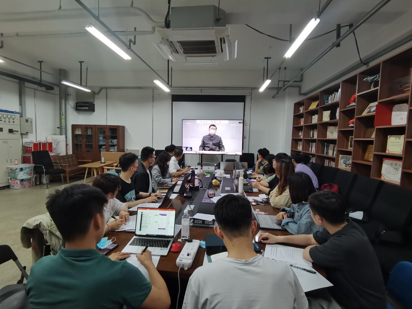 参会同学首先一起观看了《新闻联播》。在五四青年节即将到来之际,中共中央总书记、国家主席、中央军委主席习近平来到中国人民大学考察。习近平代表党中央,向全国各族青年致以节日的祝贺,向中国人民大学全体师生员工、全国广大教育工作者和青年工作者致以诚挚的问候。习近平总书记在中国人民大学考察时的重要讲话精神引起了参会师生强烈反响,大家围绕总书记的重要讲话展开热烈研讨。
