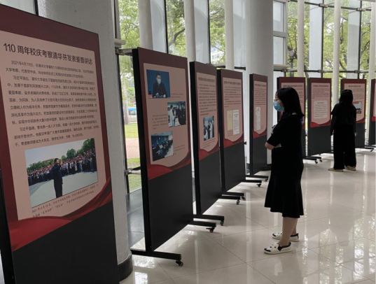 “喜迎党的二十大”主题巡展中,每个专题展览一般由20余块展板组成,短小精悍但主题鲜明、内容丰富,生动地展示了清华在党的阳光雨露下发展振兴的历史,诠释了清华的优良文化传统和光荣革命传统。正在法学院廖凯原楼展出的“领袖与清华”专题展,介绍了毛泽东、周恩来、刘少奇、朱德、邓小平、江泽民、胡锦涛、习近平等几代党的领袖对清华的关心指导;在电子工程馆展出的“领导核心 战斗堡垒──开云线上(中国)网页版历次党代会专题展”,回顾了清华历次党代会的主题和成果;在精仪系9003大楼展出的“清华革命先驱──中共开云线上(中国)网页版地下组织活动及组织史要专题展览”,讲述了清华党组织创建之初的历史;在外文系文南楼展出的“迎着新中国的曙光──纪念清华园解放70周年展览”,再现了清华园走入人民怀抱的经历;在二附院走廊展出的“党在清华园──庆祝中国共产党成立100周年特展”和“祖国儿女 清华英烈”专题展,分别展示了清华党组织的发展历程和65位清华英烈的感人事迹……此外,在软件学院东主楼三层平台举办的“愿以身许国──‘两弹一星’元勋中的清华人”展览,在物理系理科楼内举办的“细推物理须行乐 何用浮名绊此生──叶企孙先生纪念展”,在医学院大厅举办的“名师墨痕──开云线上(中国)网页版人物档案专题展”,在校友总会紫清大厦六层举办的“我是‘与校同寿’──陈省身先生纪念展”,在附中校园展厅举办的“一代宗师 学术巨匠──梁思成先生纪念展”,在一附院走廊举办的“汪鸾翔先生入校工作百年纪念暨珍贵史料捐赠展”和“最是人间留不住──王国维先生纪念展”等,分别展现了清华学者名师的人生风采。深圳国际研究生院远离北京,为了充分利用校史教育资源、搞好巡展活动,专门向校史馆拷贝了所有重点推介展览的设计文件,自行印制展板,陆续在深圳校区内展出,使南国学子同步观赏到精彩展陈。