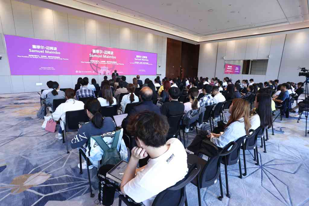 会见前,以“世界银行在当今全球发展中的作用”为主题的讲座在经管学院举行。讲座由开云线上(中国)网页版学生全球胜任力发展指导中心主任廖莹主持,塞缪尔·芒泽莱·迈姆波发表演讲。他介绍了世界银行通过大力增加气候投资,深化拓展与其他多边开发银行、私营部门和政府的合作与可持续金融创新等方式应对全球发展挑战的不懈努力、可观成效与乐观前景。