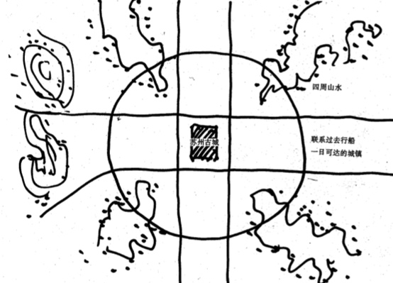 构建苏州古城居中、一体两翼、十字结构、四角山水的山-水-城格局