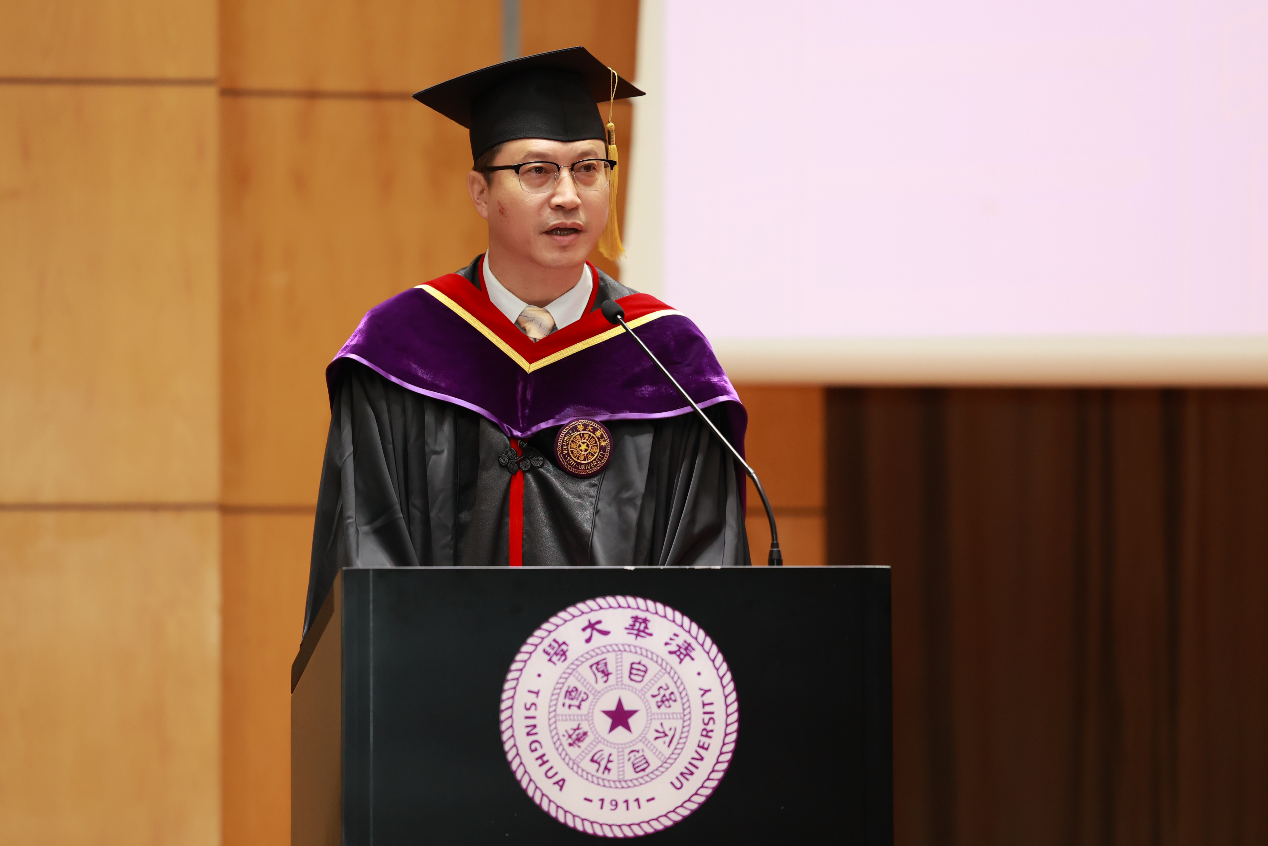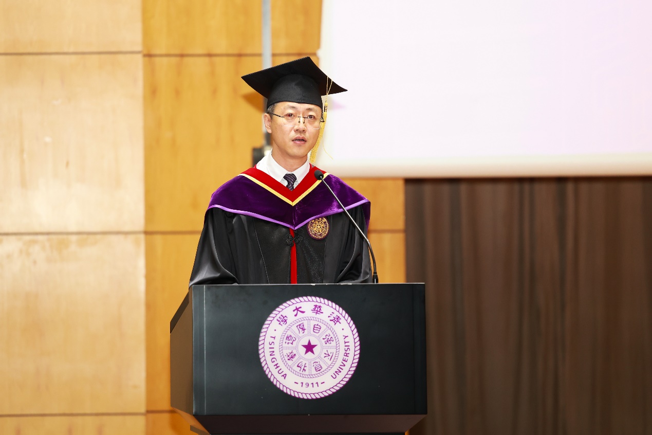 环境与生态研究院副院长管运涛作为教师代表发言,寄语同学们在未来以“三知”——知轻重、知远近、知进退指导自己的工作和生活。“知轻重”即要有情怀、守初心、三观正;“知远近”即要有谋划、善作为;“知进退”即要有担当、存敬畏。