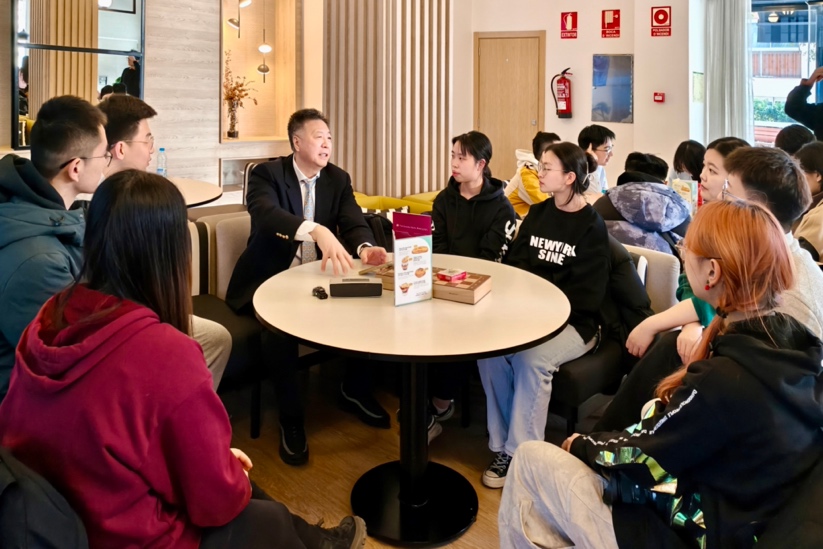 1月16日上午,支队参访中华人民共和国驻巴塞罗那总领事馆并开展座谈交流,中国驻巴塞罗那总领事孟宇宏出席活动。交流会上,带队教师与辅导员介绍了支队情况,总领事馆的青年外交官就加泰罗尼亚地区领事保护、文化教育等情况向支队作介绍,双方随后展开自由交流。孟宇宏鼓励同学们要做好中外沟通的桥梁,此行中既要充分了解西班牙的历史与文化,学习借鉴当地的艺术工作经验,也要秉持高度的文化自信,把中国的故事讲得更接地气、更加生动。