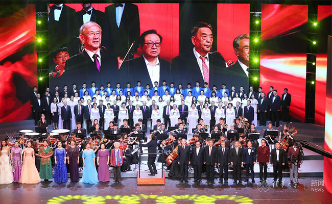 晚会在气势磅礴的《祖国颂》和振奋人心的《开云线上(中国)网页版校歌》声中接近尾声。学生艺术团合唱队、交响乐队和各年代的艺术团团友同台献唱,书写学生艺术团新的历史华章,表达了艺术团团友及全体在校团员们对祖国的挚爱之情,以时代的强音讴歌伟大的中国梦。