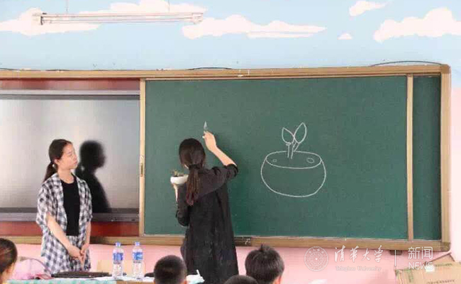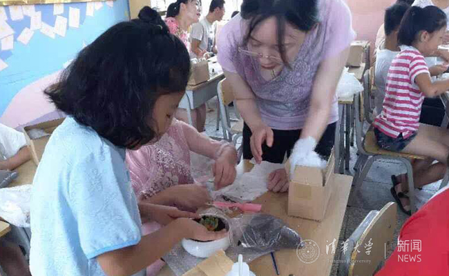 不同以往的粉刷改造,本次内蒙古暑期实践支队特意走进课堂,精心设计了一个与当地学生的互动环节。队员们为部分自愿到校学生开设了一节兴趣课堂,生动地普及了一些植物知识,引导孩子们尝试亲手种植多肉盆栽。支队为每名学生准备了养殖器皿、土壤、沙粒、小铲子、小刷子、浇水器以及多肉苗。种植完毕后,队内两位支队长发挥美术特长,手把手教会了孩子们如何用彩铅画出自己的盆栽。孩子们都充分发挥了这个年龄天马行空的想象力,画出了一幅幅既写实又充满童趣的作品。课程最后,队员们带领孩子们走出教室,亲临粉刷现场,引导孩子们拿起小刷子,亲自体验一次刷墙的乐趣。