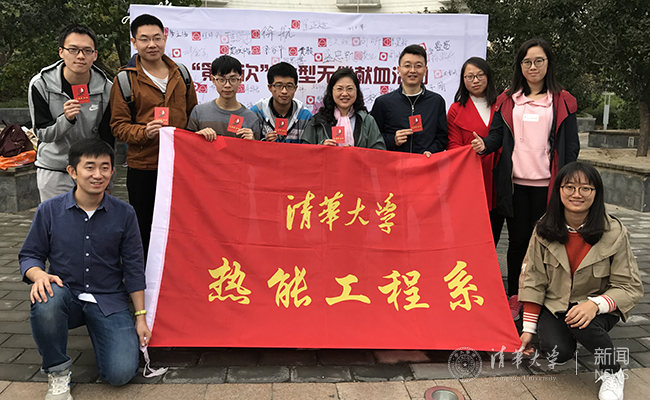 热能系党委书记李宇红带领热能系同学献血。夏石冲 摄